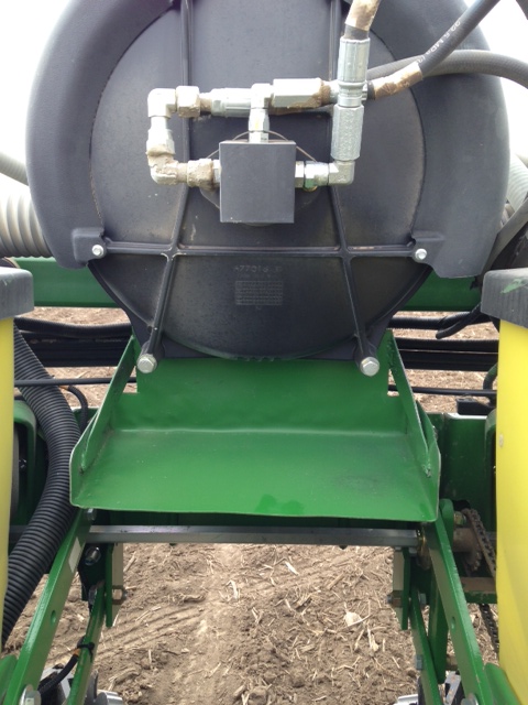 We have been having some issues with a new 1770NT 24 row that has chain drive row clutches that trash is getting wrapped around the clutch sprockets and causing them to start slipping. After checking it over, we noticed it was on the rows that has the vac motor in between them. The vac motors are creating a turbulence that throws the trash around and then get wrapped around the sprockets. We came up with a deflector to help move the vacuum air back and out of the way. See picture below for reference.