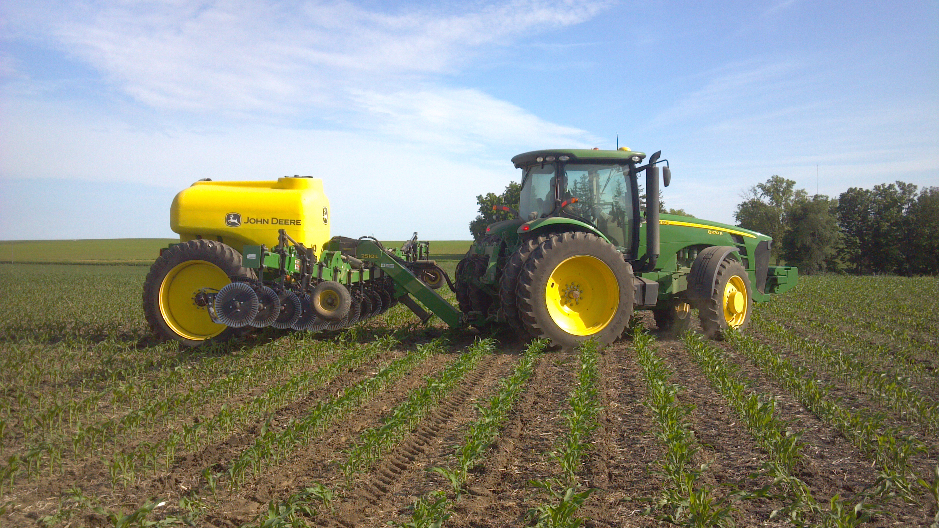 Over the past week the Southwestern Wisconsin corn crop has progressed very quickly. We went from being able to still apply fertilizer last week to being fully canopied in a week. Beans are still really short, but haven’t had much in the way of stressors or insect pressure yet this year. On June 7th we started out the first 2510L applicator that the Cuba City store had sold. The 2510L was a 15 row with a mole knife for placing the nitrogen below the surface. The customer was very impressed with the speed that it was able to run without having soil “blowouts” in his field, and also how accurate the rates were. As with any nitrogen application, it is crucial to apply exactly the amount that you want to apply where you want to apply it and also at the correct time for the plant’s needs. In addition, the applicator was very easy to set up and run due to the John Deere GS2 rate controller being ordered out of the factory.