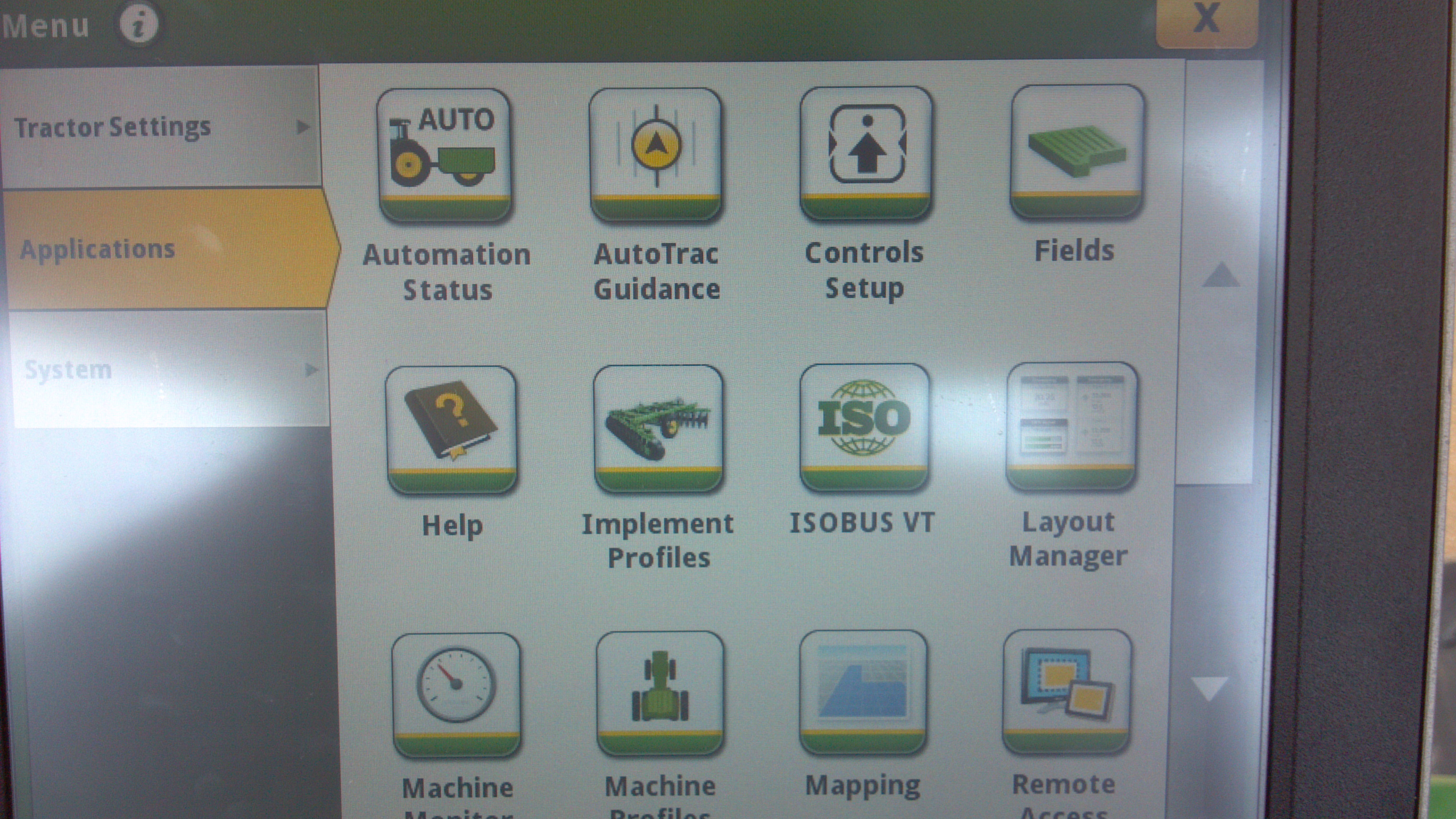 Here you can select from your receiver, rate controller, planter, or whatever else you have on the system. This part is very similar to the “main menu” screen that shows all of the active ISOBUS implements that the tractor has running