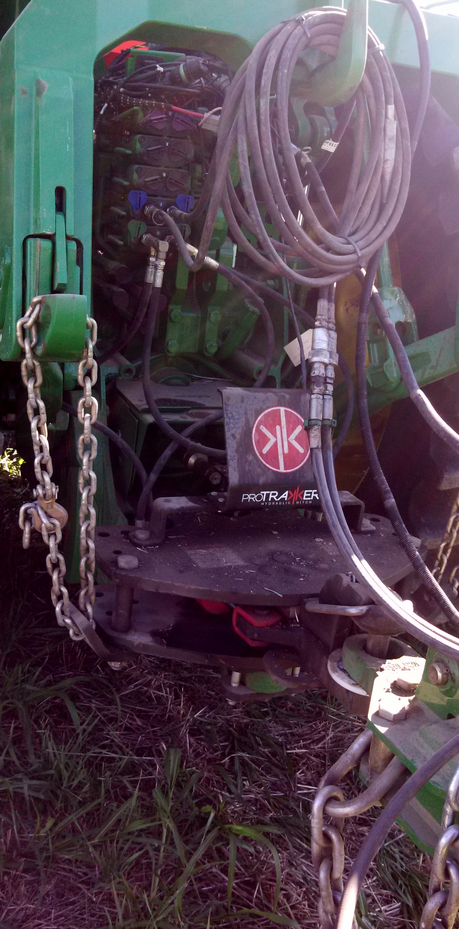 A couple of weeks ago, we got the chance to install a Pro Trakker hydraulic hitch to use with Active Implement Guidance. With this set-up, the tractor and implement both have receivers on them. We ran an RTK receiver on the tractor and used John Deere’s Share Signal software to share the RTK accuracy with our SF1 receiver on the implement saving some money on activations. The tractor drives on the line and the hydraulic hitch steers the implement on the line as well.